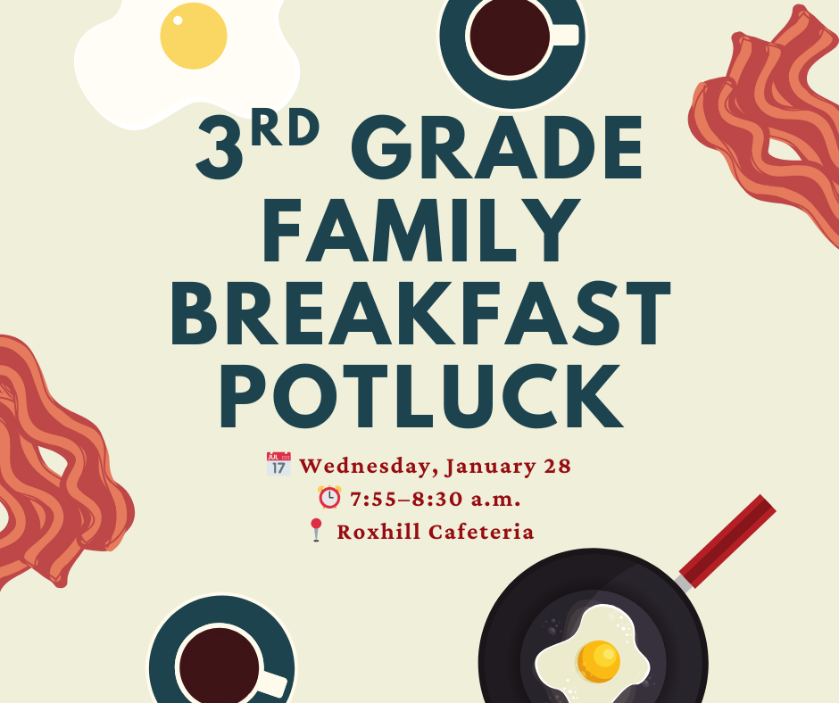Third Grade families please join us for a warm and welcoming morning together! Families are invited to bring a favorite breakfast dish to share.